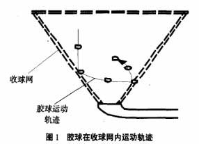 3)對1號機組收球網(wǎng)進行檢查發(fā)現(xiàn)收球網(wǎng)的柵格上卡有部分膠球,膠球在收球網(wǎng)上已變形,卡粘的膠球已使得凝汽器循環(huán)水出口壓力上升0.02 MPa。此外收球網(wǎng)底部膠球管道也已被膠球完全堵住,這也是I號機組收球率為0的原因。通過與設(shè)備廠家的分析,并進行膠球在收球網(wǎng)中的水力模型試驗四(見圖1),判斷出由于凝汽器循環(huán)水出口壓力偏高(一般凝汽器循環(huán)水出口壓力為0.1MPa,而本公司凝汽器循環(huán)水出口壓力是0.12MPa),造成膠球在收球網(wǎng)內(nèi)部因速度過快沖擊收球網(wǎng)柵格而旋轉(zhuǎn),不能及時且順利的落人收球網(wǎng)底部,被及時送人收球泵人口,使得膠球回不到裝球室,致使該裝置收球率很低。